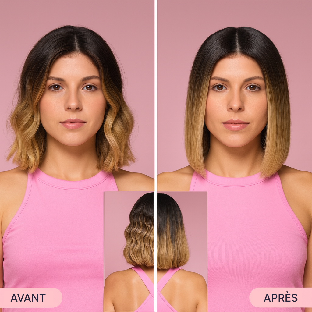 Voyez la différence dès la première retouche : cheveux lissés, plus nets et sans frisottis où que vous soyez.